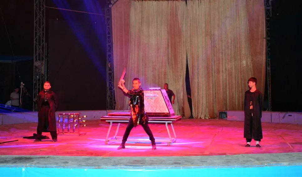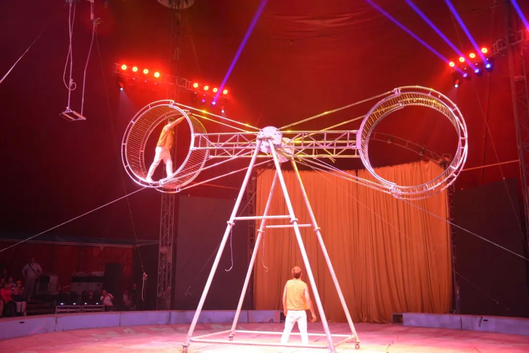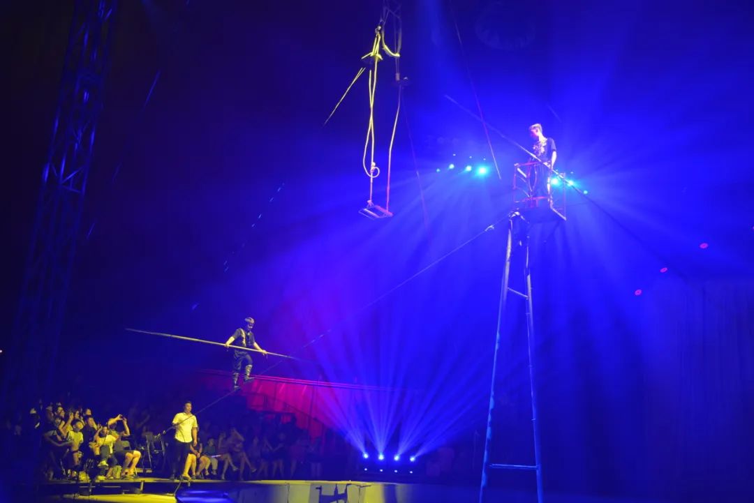 杂技演员们的出演精彩绝伦,空中钢丝、死亡大飞轮,更有险象环生的蒙眼行走、前后翻滚等高难度动作……