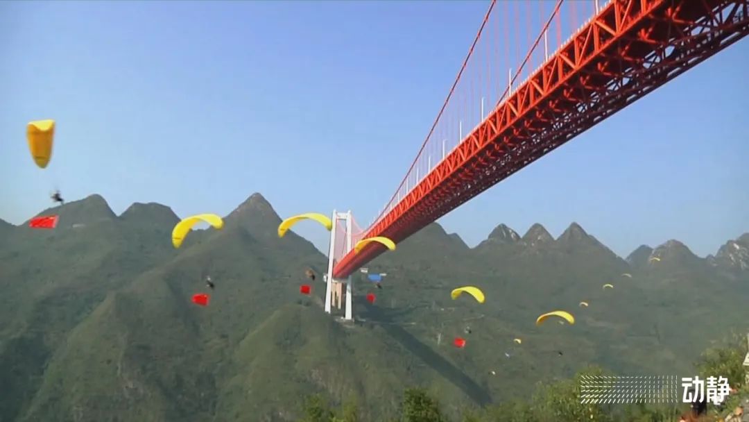 大桥之上,悬崖之巅,游客在体验心跳的感觉。黄果树旅游区2公里外 ,世界级桥梁——坝陵河大桥解锁“桥+”新玩法。