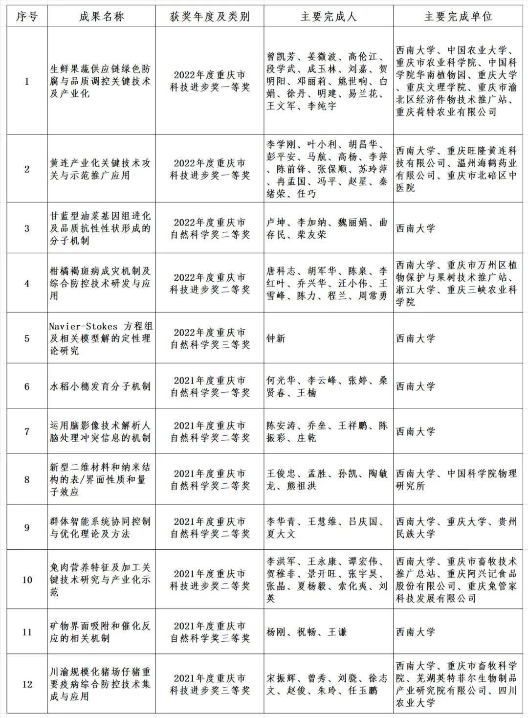原标题:《西南大学5项成果荣获2022年度重庆市科学技术奖》