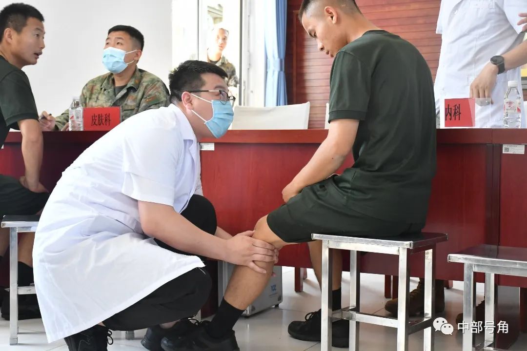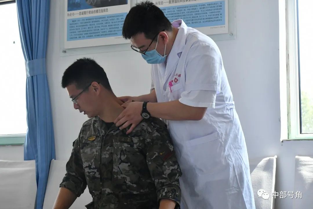 专家依据官兵情况,热情地为每位前来就医问诊的官兵提供医疗保障服务,耐心询问战友的身体健康状况,仔细为他们检查,精心进行诊疗。
