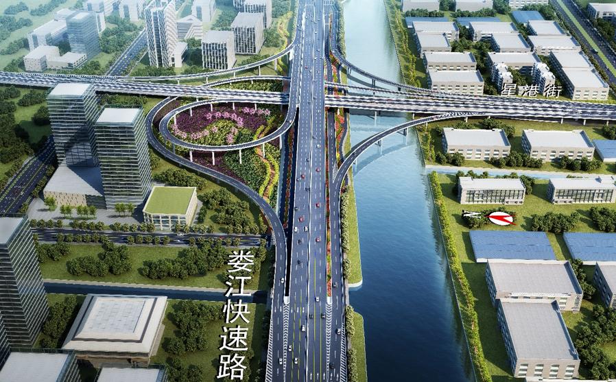 跨高速廊道方面,共规划15条通道。其中星杭街、扬明路、陆泾路、星湖街、星塘街、星华街、唯胜路等12条已建成,星港街北延正在建设中。此外,规划区预留亭苑街北延、通和路北延2条跨高速公路通道。