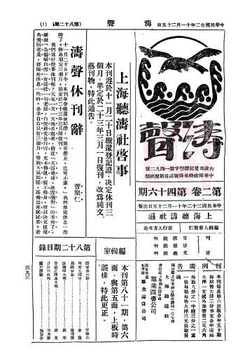鲁迅十分赞赏《涛声》,不仅爱看,还经常给它投稿,他评价《涛声》上的文章“赤膊打仗,拼死拼活”。但好景不长,《涛声》1933年11月20日被当局以“袒护左翼,诽谤中央”为由下令停刊,至11月25日出休刊号为止,共出版83期。