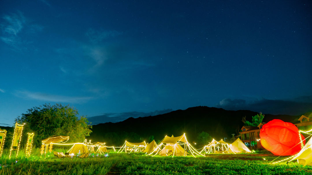 营地灯光如星芒闪烁