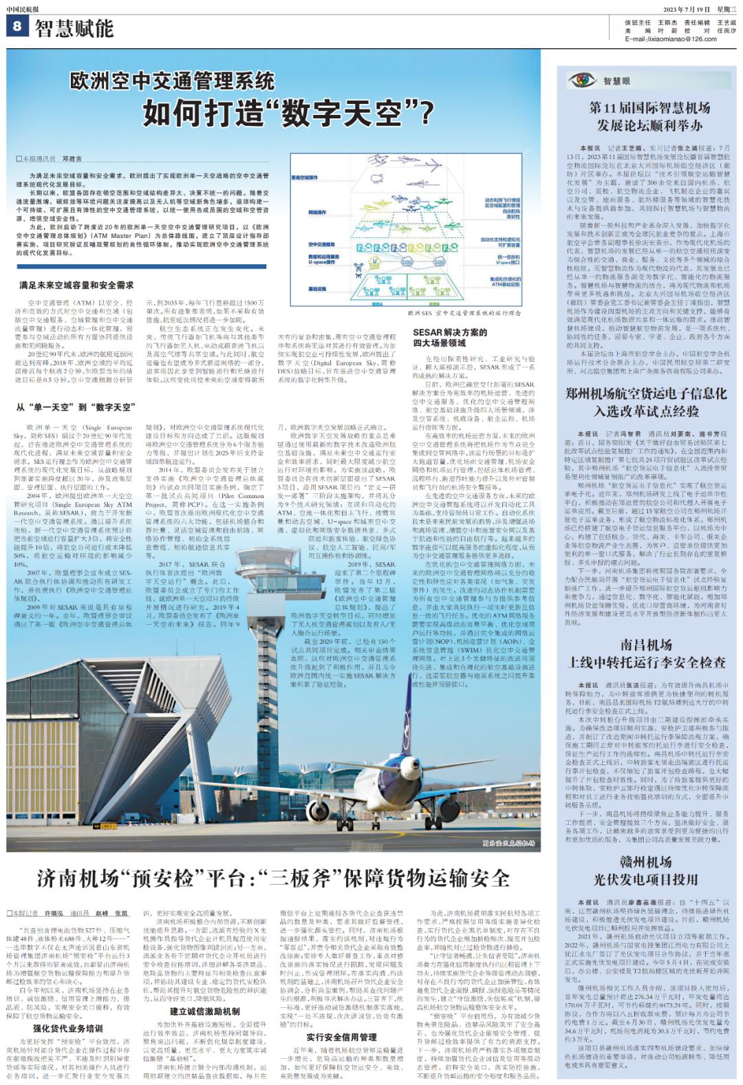(本文刊载于中国民航报2023年7月19日8版)《智慧民航》导刊每周三