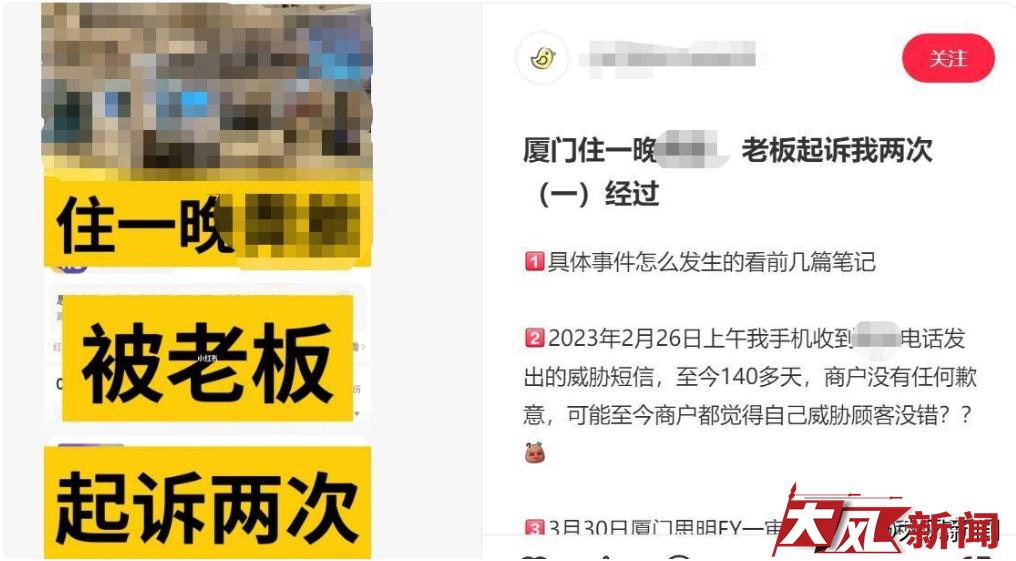 “在旅店方的侮辱和威胁下,我出现精神恍惚、难以入睡等情况。”王女士说,此后,她向厦门市相关部门投诉了旅店的行为,并以“笔记”的形式在网上公开了她对旅店的点评、旅店的回复等信息及过程。