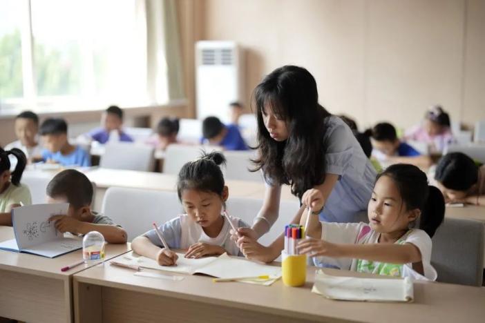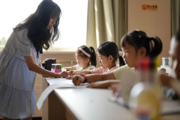7月19日,孩子们在河北省唐山市丰南区新兴社区开办的“爱心暑托班”上学习绘画。为有效缓解学生暑期“看护难”问题,河北省唐山市丰南区各社区以大学生志愿者、社会组织等为依托,利用社区服务中心等场所开办“爱心暑托班”,设置围棋、手工、绘画等20余类特色课程,为孩子们打造一个丰富多彩的假期,让孩子开心、家长放心。