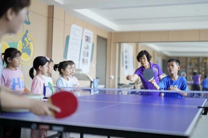 7月19日,孩子们在河北省唐山市丰南区新兴社区开办的“爱心暑托班”上学习打乒乓球。