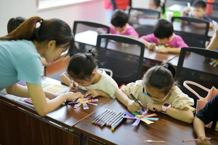 7月19日,孩子们在河北省唐山市丰南区新华社区开办的“爱心暑托班”上学习手工制作。原标题:《河北丰南:爱心暑托班丰富假期生活》