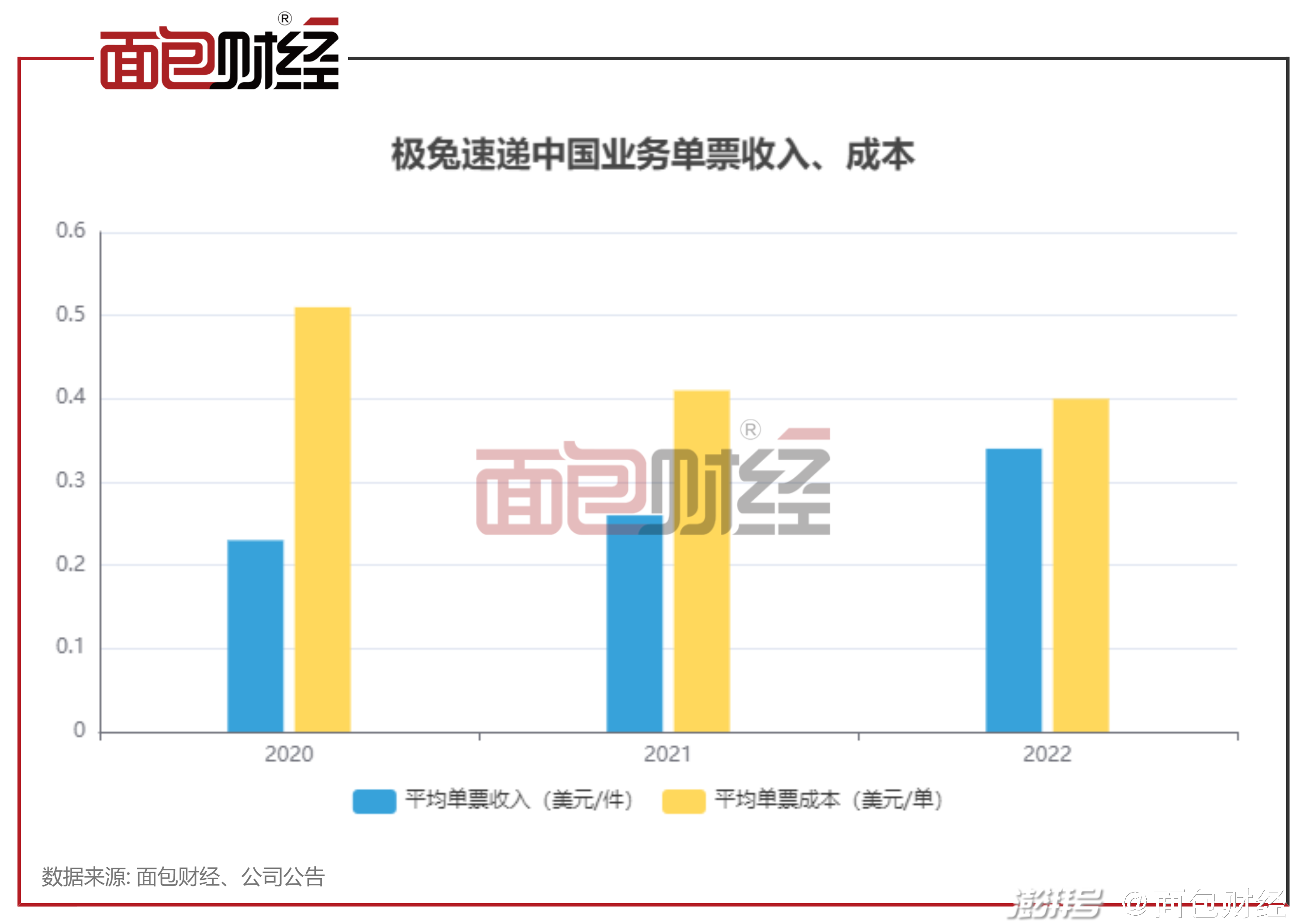 但是,招股资料上的一些关键数据折射出极兔速递正在为价格战付出巨大代价:2022年,极兔速递经营亏损达到13.8亿美元,经调整亏损约7.99亿美元。在中国市场的平均单票收入0.34美元/件,平均单票成本0.4美元/单,当期仍然处于“做一单、亏一单”的境地。