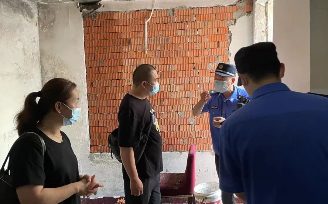 最近,浦东新区南码头路街道某小区的韩女士准备卖房,由于其在天井搭建违法建筑,多年前房屋已被注记,需要拆除违建恢复原状后解除注记才能交易。其咨询南码头路街道综合行政队后,准备自行拆除,但刚敲了几锤子,二楼邻居就前来阻止了。
