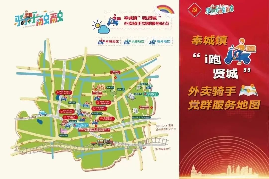 自2022年奉城镇成立“i跑贤城”外卖骑手党建服务联盟以来,至今已在全镇范围内设置8个“骑乐融融”驿站,面向全镇新业态、新就业群体开放,为他们提供休息、学习、用餐等一站式服务。