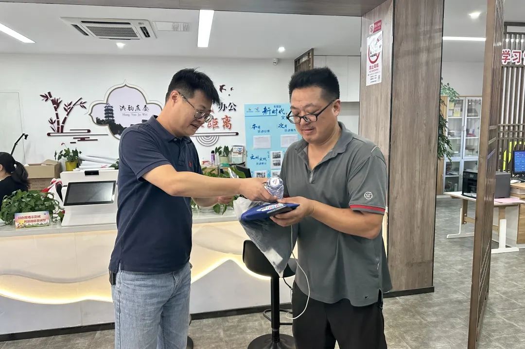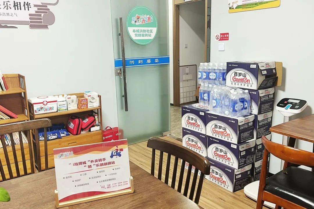 洪韵社区“骑乐融融”驿站贴心地备好了清凉包、急救包和矿泉水等,见缝插针地给匆忙路过的骑手快递小哥们捎上清凉补给。