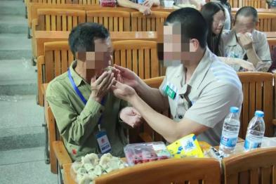 在民警的引领下,罪犯和家属有序地走进教学楼。罪犯家属代表作了亲情寄语,罪犯代表表达了自己对所犯罪行的悔悟和深刻的忏悔。为了能让罪犯和亲属更好地感受这种难得的相聚,监区准备了象征团圆的水饺,通过亲情会餐的方式,让罪犯体会到亲情的温暖。当“刺头”遇见了“白头”