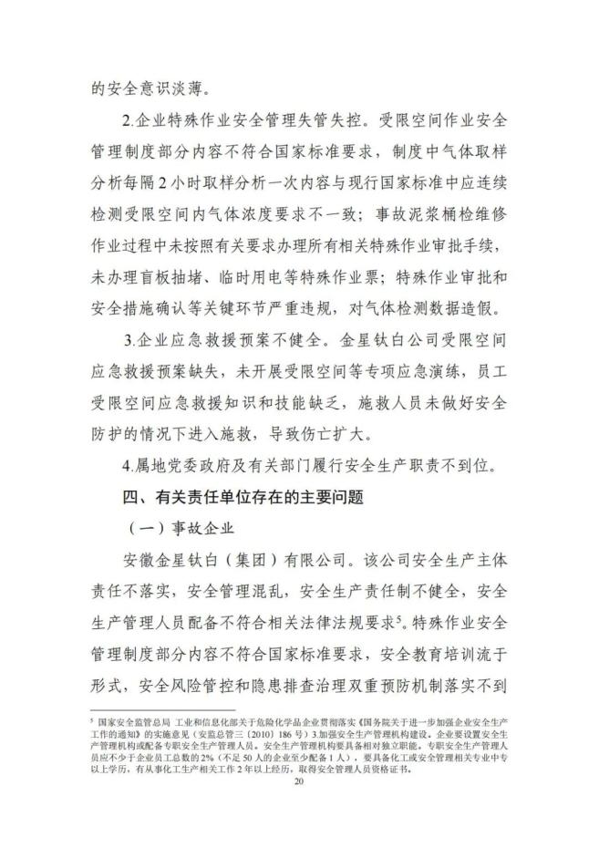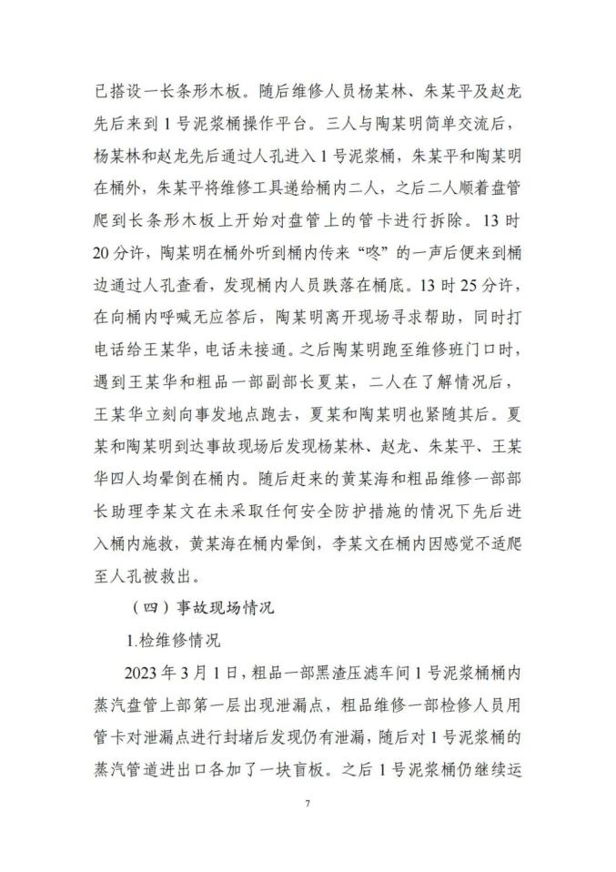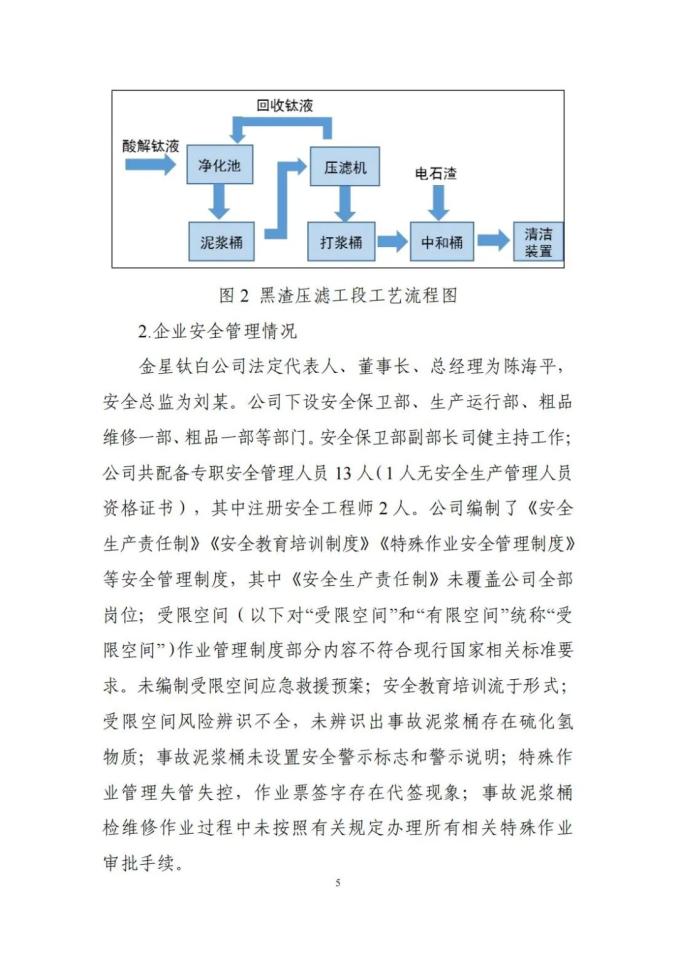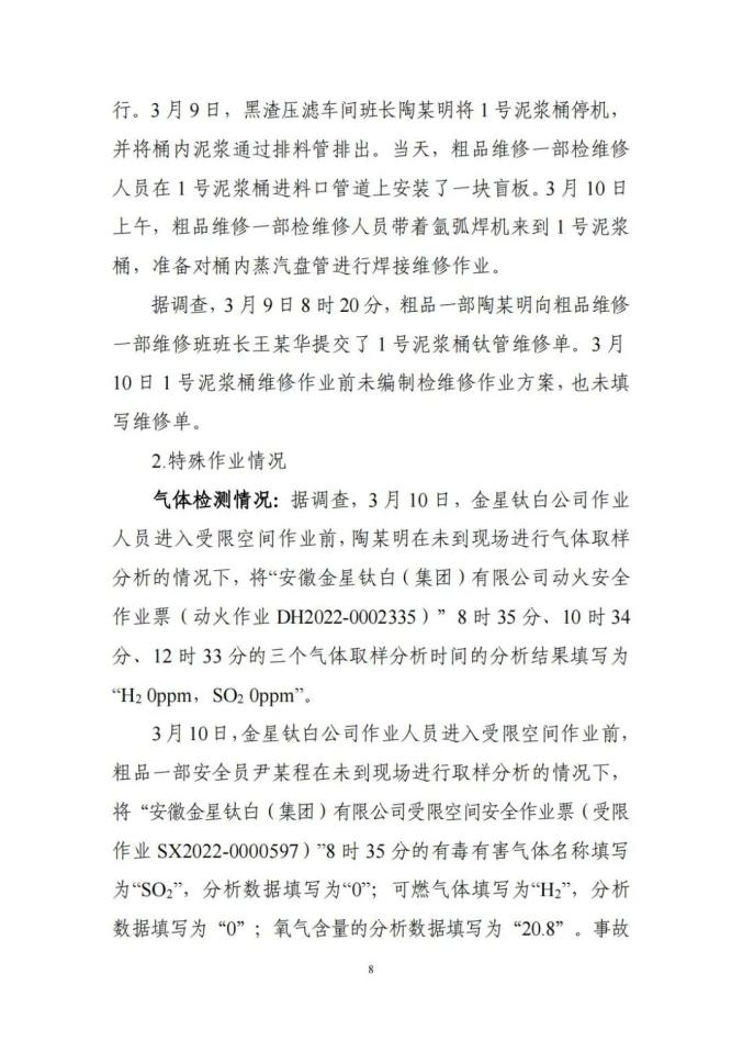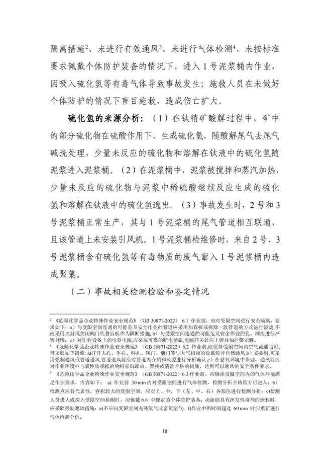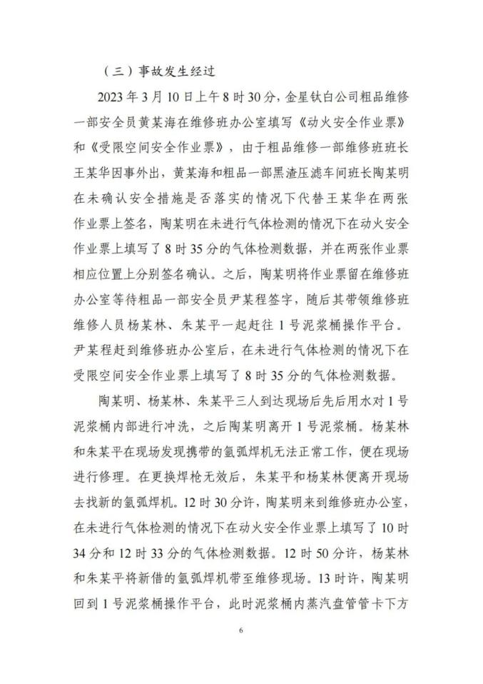 金星钛白公司作业人员违反受限空间作业安全管理规定,在未采取有效安全隔离措施、未进行有效通风、未进行气体检测、未按标准要求佩戴个体防护装备的情况下,进入1号泥浆桶内作业,因吸入硫化氢等有毒气体导致事故发生;施救人员在未做好个体防护的情况下盲目施救,造成伤亡扩大。