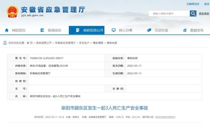 安徽省应急管理厅发布了