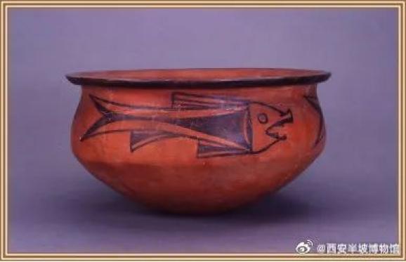 西安半坡博物馆展示了形象逼真的单体鱼纹
