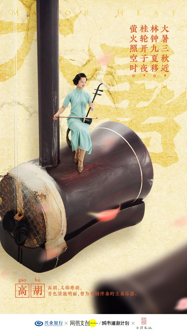 暑气蒸腾,日光炽烈,音色活泼又明亮欢快的高胡,最适合渲染夏日的热烈氛围。高音清脆明亮,如阳光普照,又如马声嘶鸣;低音圆润低回,最宜抒情,如河流蜿蜒、草原牧歌。