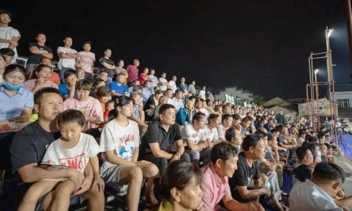 观看席坐满了人,十里八村的乡亲们呼朋引伴到场观赛,津津有味地观看“村BA”赛事。