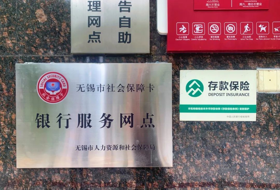 在无锡农村商业银行梁溪支行的外墙上“无锡市社会保障卡银行服务网点”