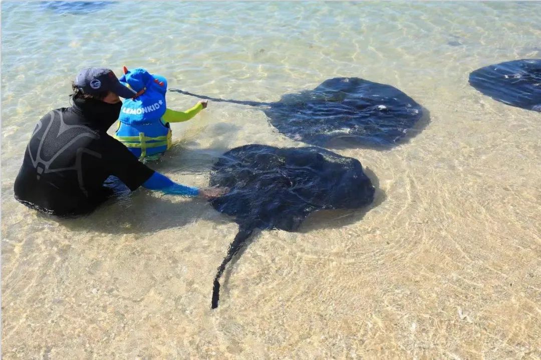 “你们慢慢吃,我回去了。”傍晚时分,分界洲岛长风海钓俱乐部小店里,老板陆泽良将做好的饭菜端上餐桌,跟几名钓友打完招呼后就准备乘船出岛回家。钓友“洪哥”在五指山居住,热爱海钓的他几乎每周都会来分界洲岛钓鱼,这个海钓俱乐部成为他跟钓友们的家。“洪哥”说:“分界洲岛周边严格禁止渔船进入,也不准随意捕鱼,海洋生态保护好了,海钓资源就丰富,在这里海钓的体验是别处所没有的。”提一个小桶,拿着小鱼给魔鬼鱼喂食……在海边,不少父母陪着孩子跟“微笑天使”魔鬼鱼亲密互动。“它来了,它想吃小鱼!”“它软软的,性格好温顺!”人群中,孩子们玩得不亦乐乎。