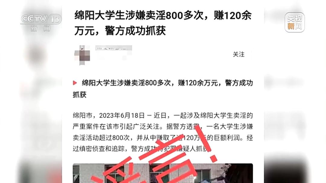 通过AI合成技术,不法分子大大降低了虚假视频的制作门槛,有的仅需1分钟就可以制作完成,而当这种技术应用在虚假文章生产上,则成了违法违规的重灾区。今年6月,一则“绵阳大学生涉嫌卖淫800多次,赚120余万元,警方成功抓获”的配图文章引发网民围观,后经警方证实,为AI软件自动生成虚假文章。今年3月,山东警方破获一起特大造谣引流网络水军案,某传媒公司利用群控软件和人工智能技术,大肆爬取境内外短视频内容,篡改编造敏感社会事件,在网络平台发布虚假信息,通过其运营的自媒体账号达4万多个,虚假帖文信息80多万篇。中国社会科学院法学研究所研究员 支振锋:在内容端,利用深度合成技术和生成式大模型,可以非常容易甚至在某些方面能够一键生成文本、图片、视频、音频信息。一方面在制造谣言上更方便了,另一个方面在识别和监测谣言上更困难了。