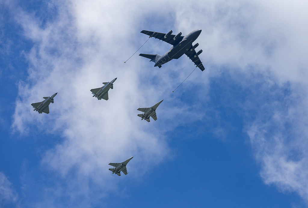 蓝天盛宴:运油-20、歼-20、歼-16三机同框