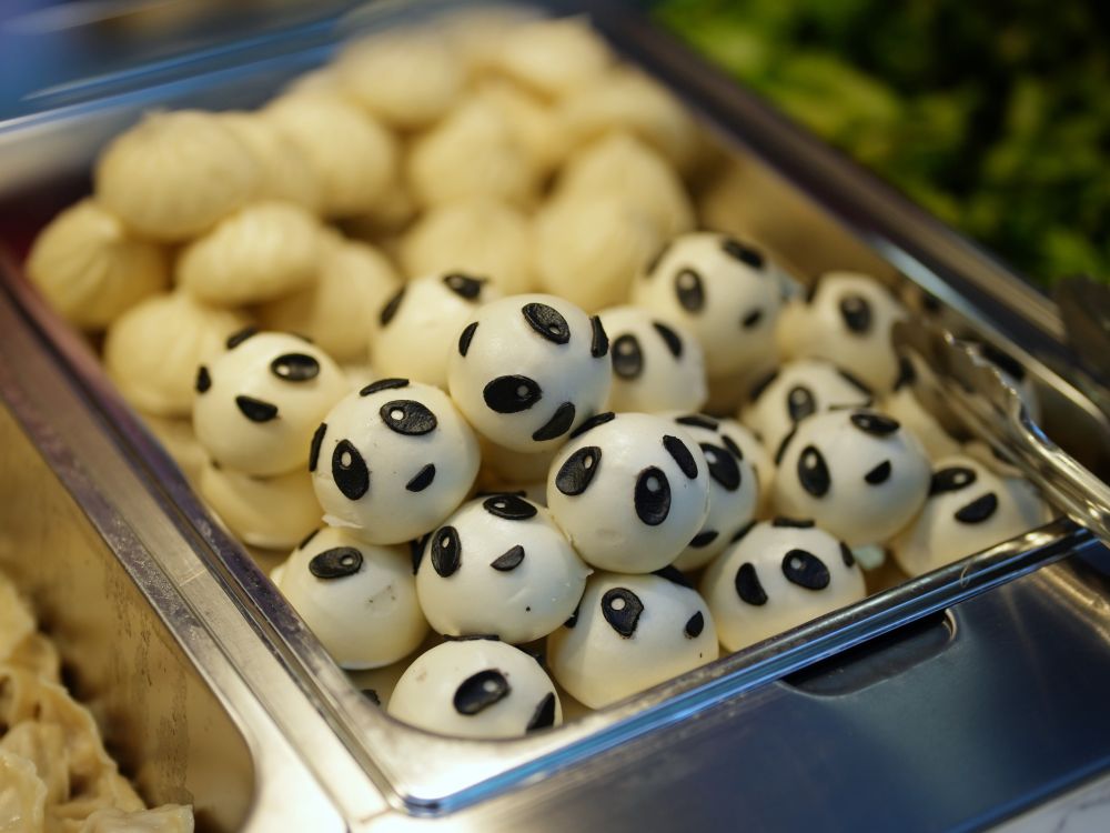 “蓉宝”雕塑对街的大运村运动员餐厅,具有中华美食、欧陆风味、亚洲风味等多个门类,而在中华美食的主食分区,日常供应的熊猫造型豆包与黑芝麻汤圆,常常成为远方来客们探索中华美食的第一步。