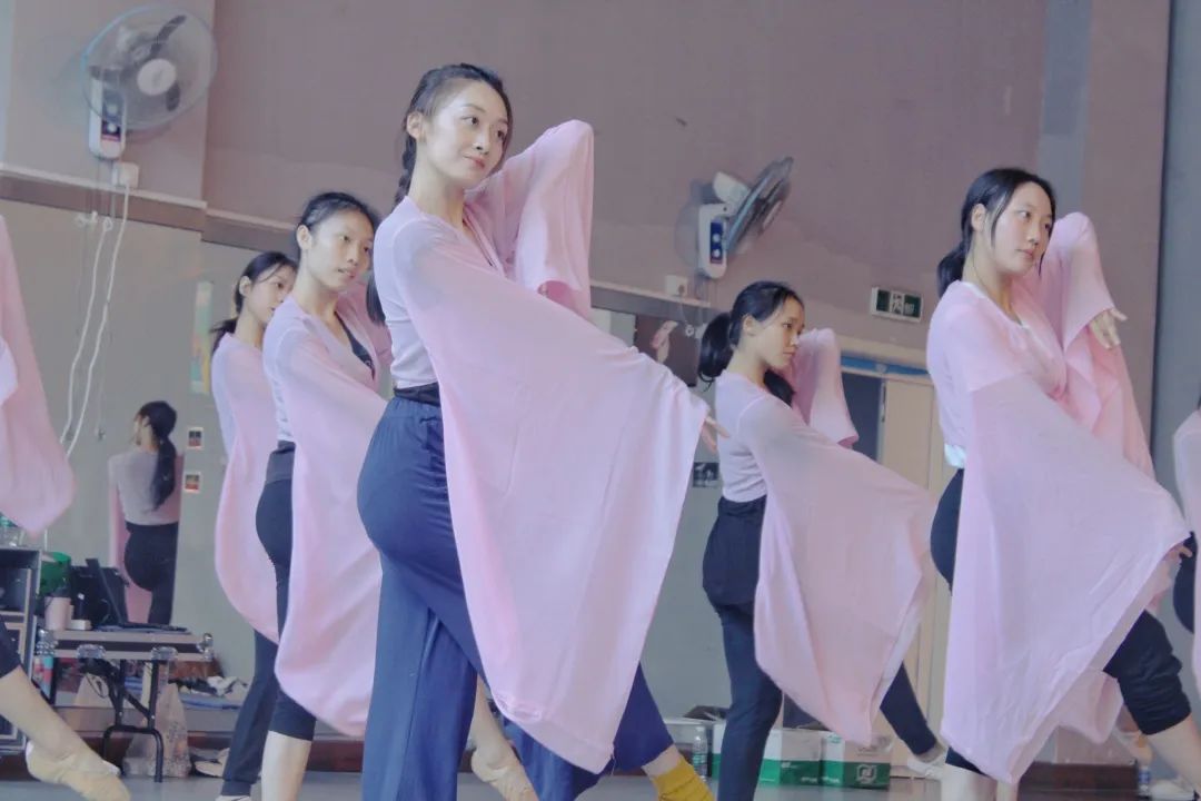 文琴舞团2023年的“入画”舞蹈专场在三个月内成型了六个群舞剧目,体现出舞团成员极高的专业素养。在老师的指导下,舞团成员积极进行多种尝试,在呈现出精彩表演的同时,自身的舞蹈能力也得到了提升。舞团团长、2020级本科生高紫伊谈到:“《谷雨》《溯·跃》含有较多的民族舞元素,且前者对腿部力量要求高、后者对体能要求高,所以我们专门训练了民族舞需要的身段和气韵,并有针对性地开展了力量训练。”