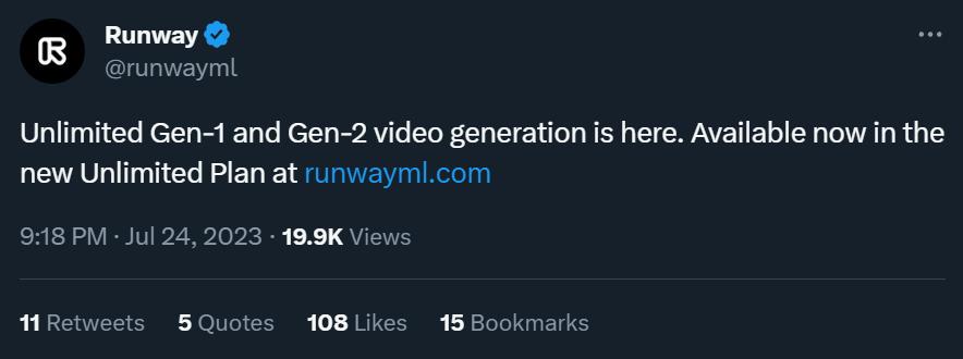 Gen-2 限制的解除让这款应用在社交媒体再次刷屏,网友纷纷晒出了自己的试用效果:
