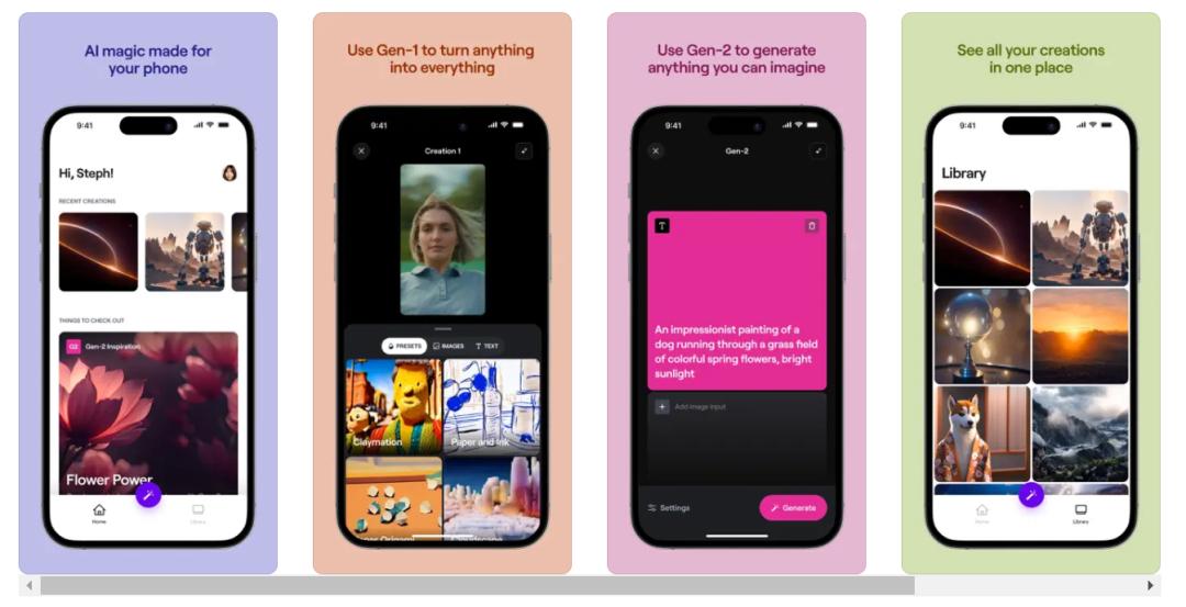 目前,Runway 已经开放了网页端的免费体验窗口,相关应用(RunwayML)也已经在苹果的应用商店上线。