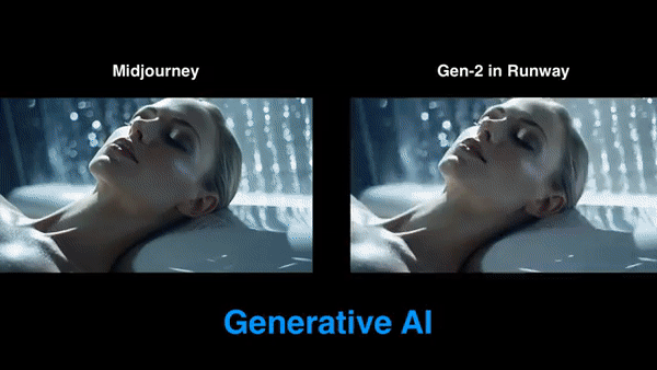 还有不少人尝试将此前大火的文生图模型 Midjourney 与 Gen-2 结合在一起使用,生成效果非常惊艳: