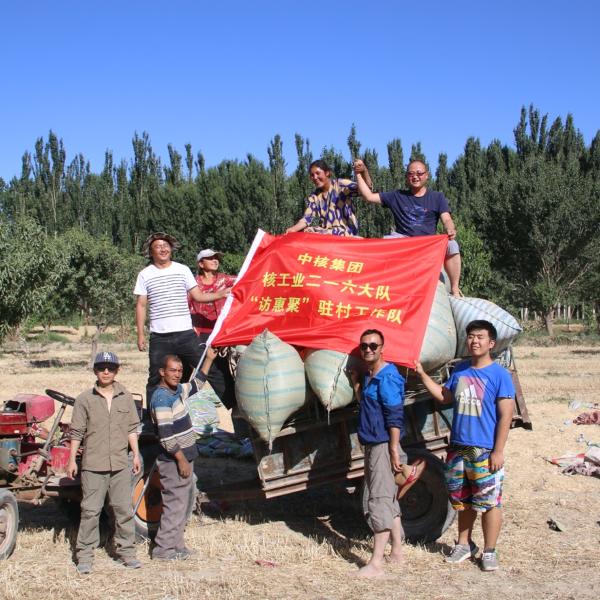 多年的帮扶,核工业二一六大队“访惠聚”工作队早已和当地村民结下了深厚的情谊,村民的收入是队员们最关心的事情。莎车县荒地镇的土地品质差,沙化、盐碱化严重。工作队在当地推进种植业产业结构调整,发展特色种植。如今村子里种植2500亩棉花,1500亩小麦、100亩巴旦木、150亩核桃,特色种植小茴香200亩、甜瓜200亩等,有效提高了农牧民收入,让荒地镇不再荒凉。工作队队员们用真心换亲情,做村民们的“靠山”,共同筑造幸福梦。