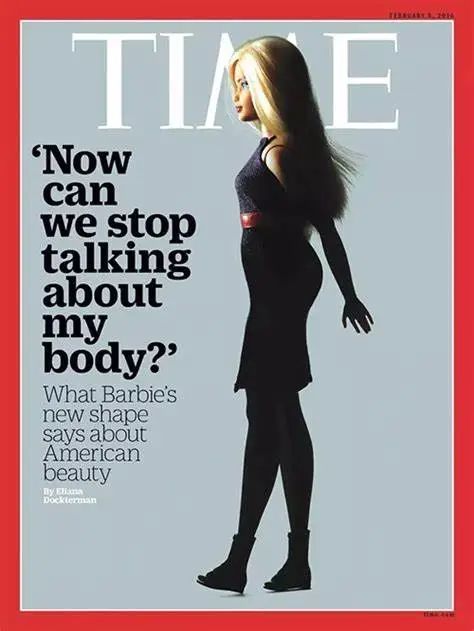 针对这种批评,美泰在2016年让小腹微凸的芭比登上了《时代周刊》封面,并为芭比新增了娇小、丰腴和高挑三种身材,于是,我们在电影里看到莎朗·鲁妮饰演的律师芭比,也才可以拥有“胖亦是正义”的身材。