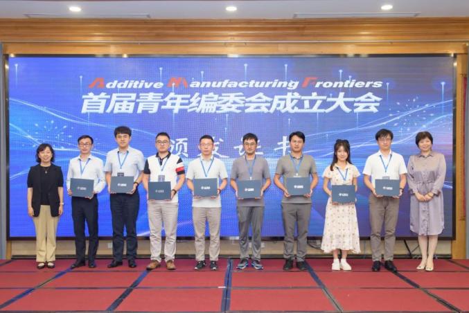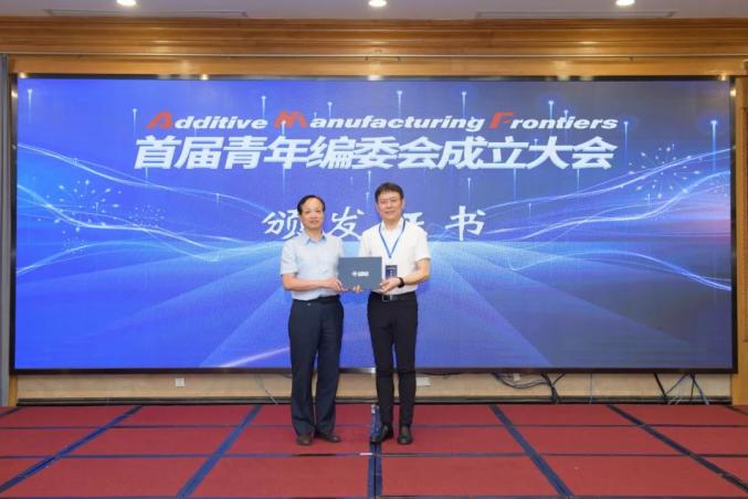 会上举行了AMF首届青年编委会成立仪式,AMF 执行主编、中国机械工程学会增材制造分会主任委员李涤尘宣读了“关于聘任《增材制造前沿(英文)》首届青年编委会的批复”,随后与会领导向全体到会青年编委颁发了AMF首届青年编委会委员聘书。