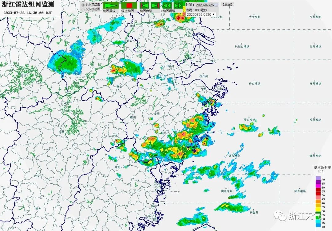 累计雨量较大站点:黄岩区沙埠镇佛岭水库28.5毫米。