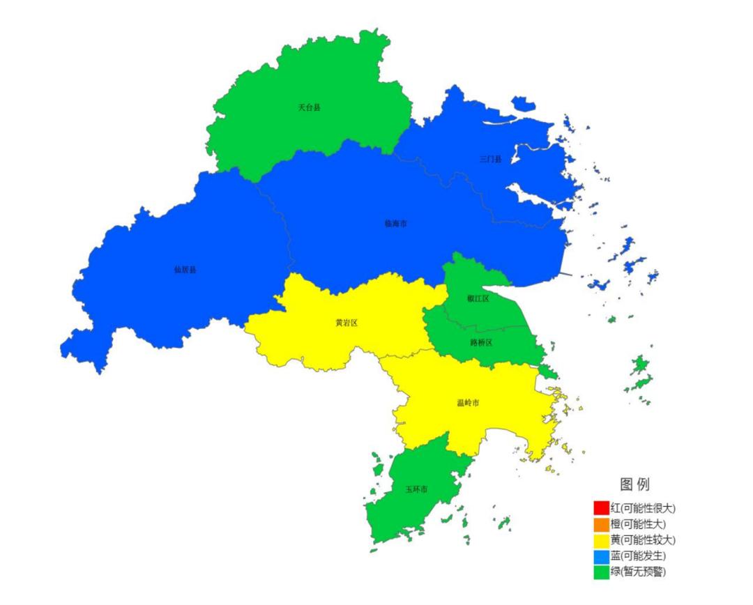 台州市海洋预报台26日发布海浪Ⅳ级警报(蓝色)。台州市水利局发布山洪预报预警信息,根据气象部门未来降雨预报,预计26日18时至27日18时,三门县、仙居县、临海市可能发生山洪灾害(蓝色预警),黄岩区、温岭市发生山洪灾害可能性较大(黄色预警)。气象预报:预计26日~29日上午我市有一次明显的风雨过程,雨量可达大到暴,个别大暴雨;沿海海面和高山区有8~9级、个别10级大风。