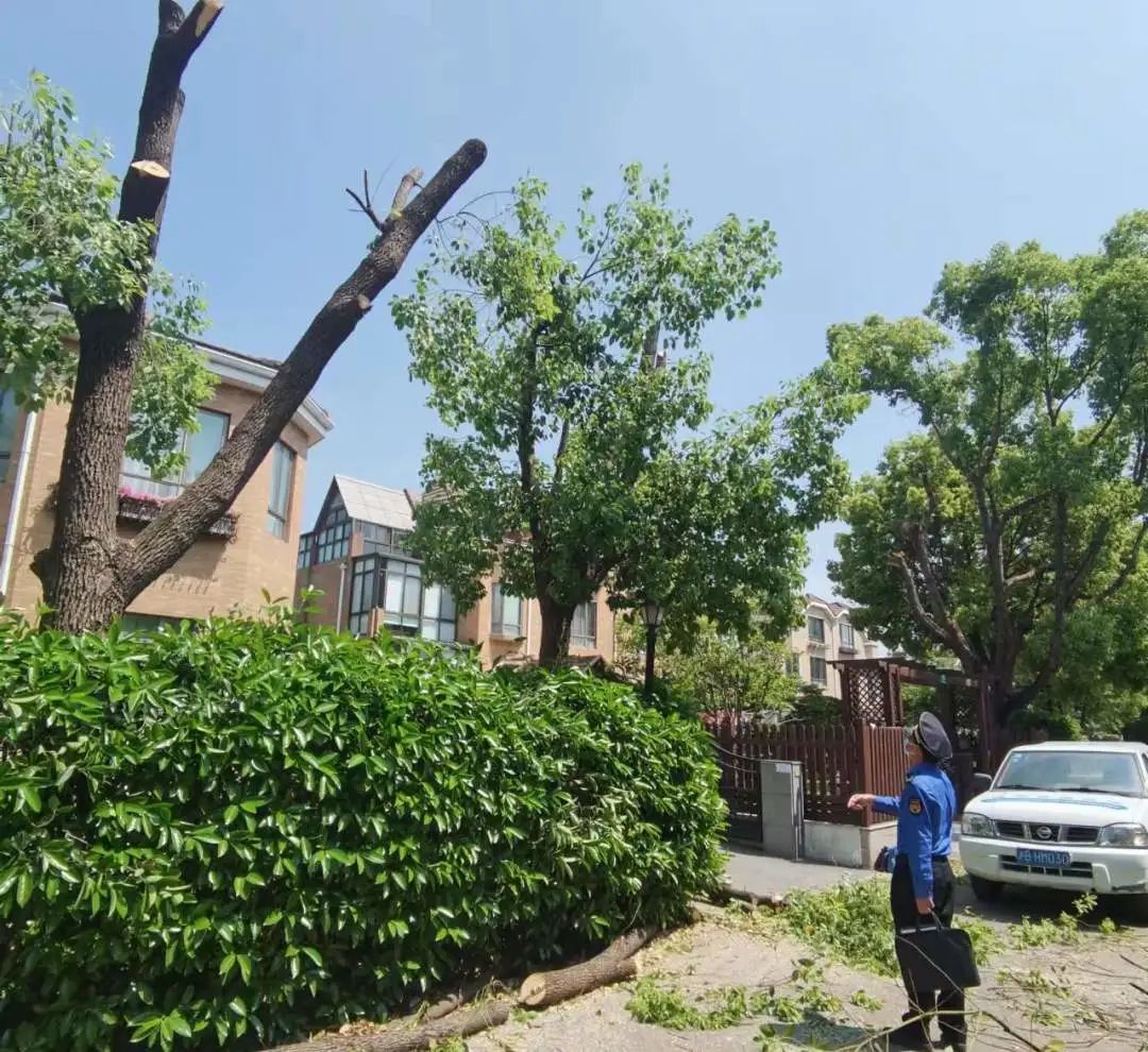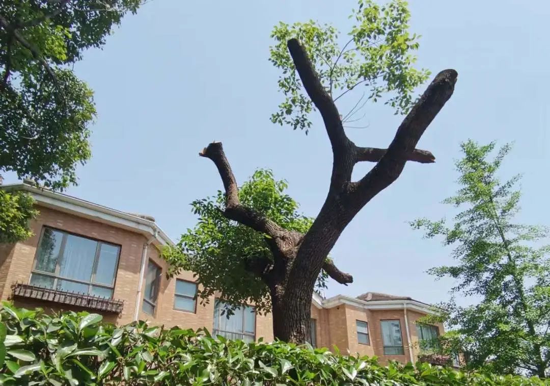 树木正值生长旺季,松江区九里亭街道某小区的香樟树生长过度,甚至顶到了屋檐下,带来了潜在的火灾蔓延、风灾破坏等安全隐患。为了解决这一隐患,业主们向物业报备后,共同找了一家绿化养护公司进行修剪。然而在树木修剪时,物业却紧急联系城管前来叫停了工人,原来是养护公司的修剪行为不符合技术标准,导致香樟树仅剩下少量枝杈。在对涉案业主,物业和养护公司进行详细调查后,城管对养护单位未按技术标准进行养护的行为进行了处罚。最终,因及时制止以上行为,这些香樟树已重新开始生长,避免了过度修剪导致的损害甚至死亡。