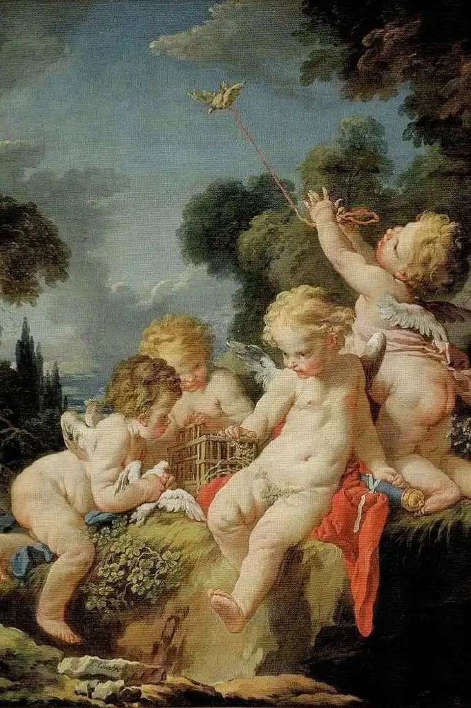 布歇《小天使与鸟》Putti一词出自拉丁语,意为“孩童”,