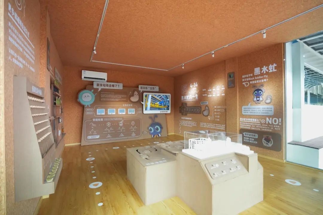 在科普馆里,有黑水虻相关各类科普标本、绘本、画册及互动装置等,不管是大朋友还是小朋友,都可以来到这里,边看、边玩、边学,一起认识“虻虻哒”这个可爱的朋友,了解包括黑水虻生物式处理厨余垃圾在内的垃圾处理新模式,在这个过程中认识垃圾分类、节能减排的重要性。