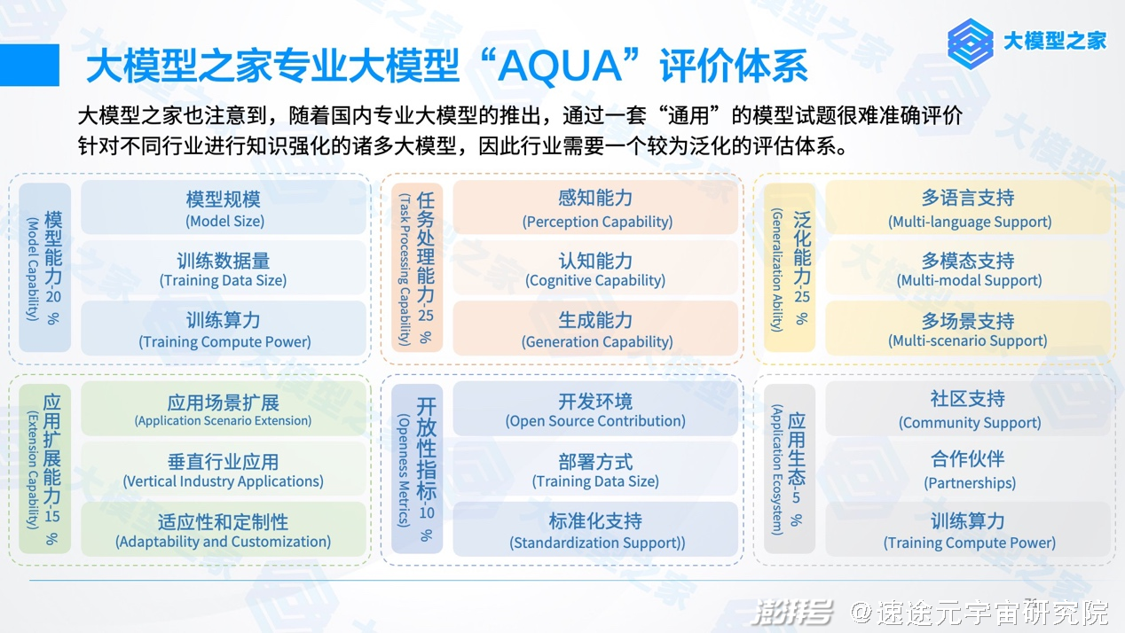 特别提出“专业大模型“AQUA”评价体系”,帮助使用者选择更适用的大模型