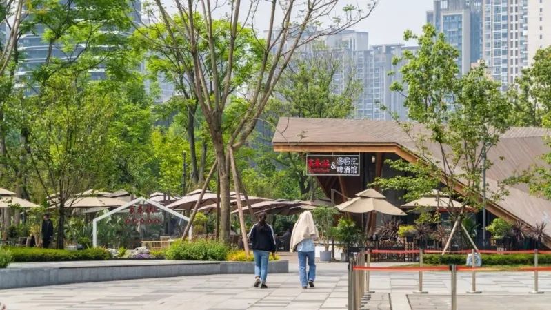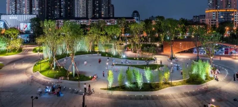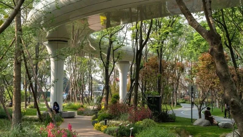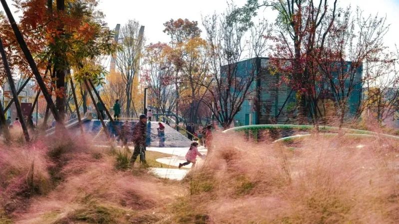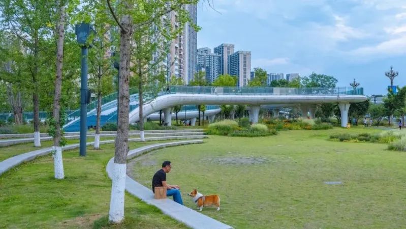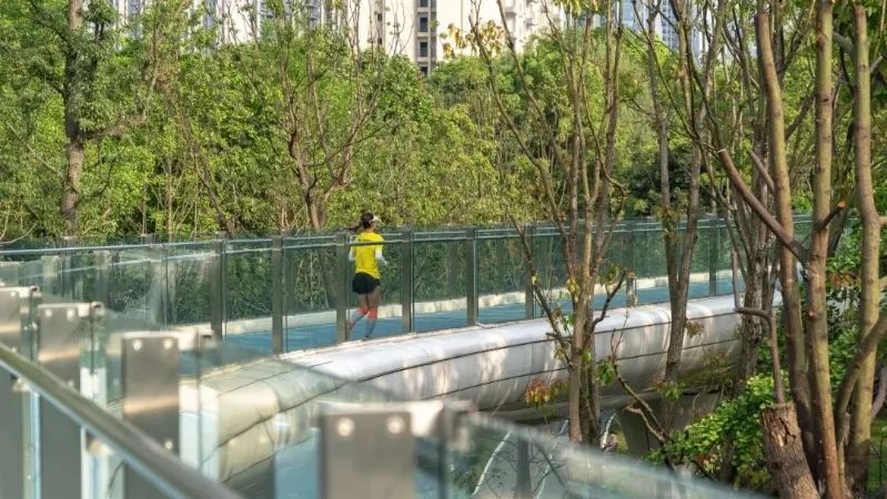 项目在悠竹山谷区域,集中体现了公园城市建设中对剩余空间、低效空间的景观化、公共化的激活利用。在满足交通需求的前提下,将交通流量较低的过境道路,转化为公园拓展区。融入新场景,搭建市民生活舞台;并利用公园配建指标,增设轻质公共服务建筑,完善项目自我造血功能,实现公共空间价值转化。点赞!