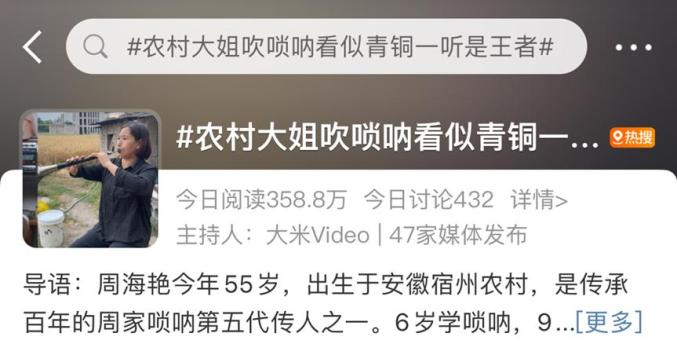 话题#农村大姐吹唢呐看似青铜一听是王者#