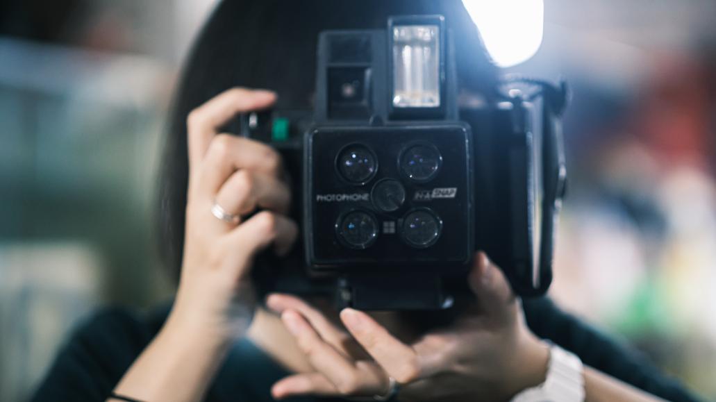 有4个镜头的超大号宝丽来相机绿色的快门按键很戳