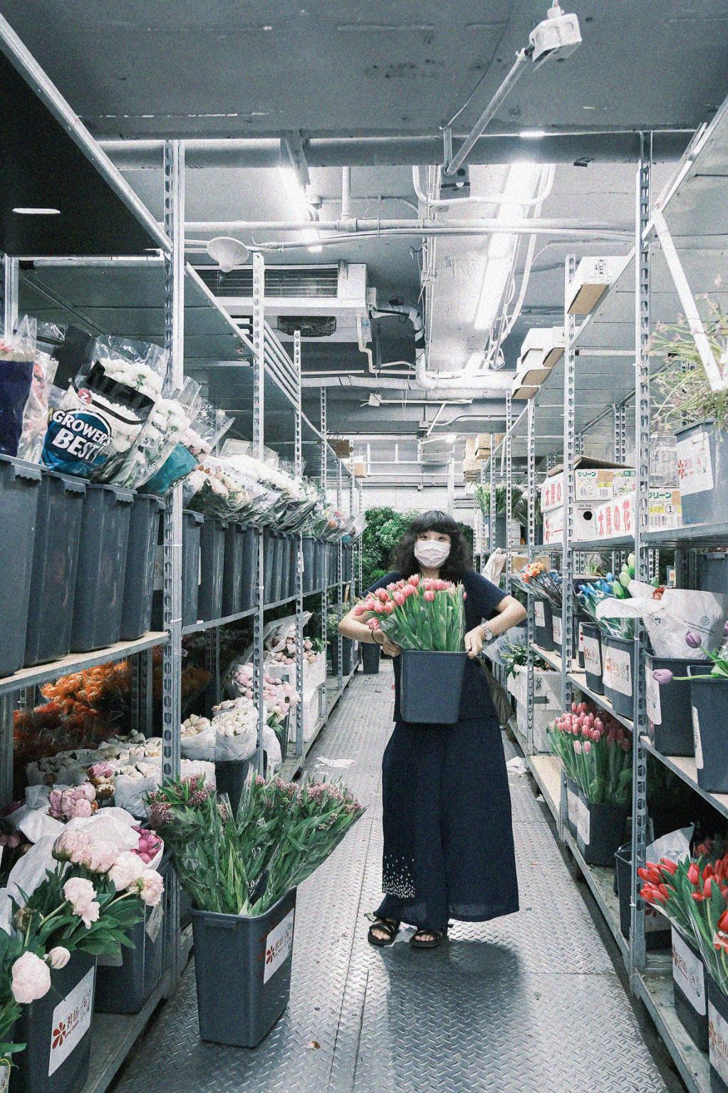 这家叫「铭坊」的铺子特别值得一逛,这儿的冷藏室,摆满鲜花桶的货架足有三层高,挑选鲜花像极了在大型超市,眼花缭乱、啥都想拿...