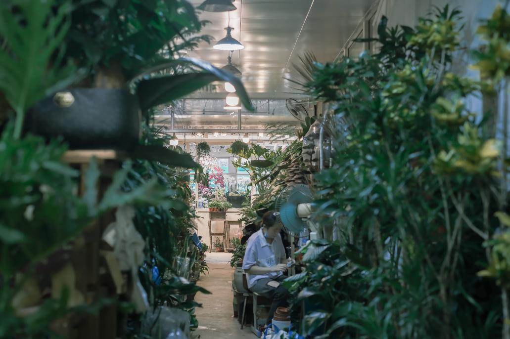 市场是开在一个大棚里的,地形四四方方,每家都把得意的绿植放在门口最显眼的位置,走道儿不经意间装饰成了一条绿色长廊。每家店都是一座小森林