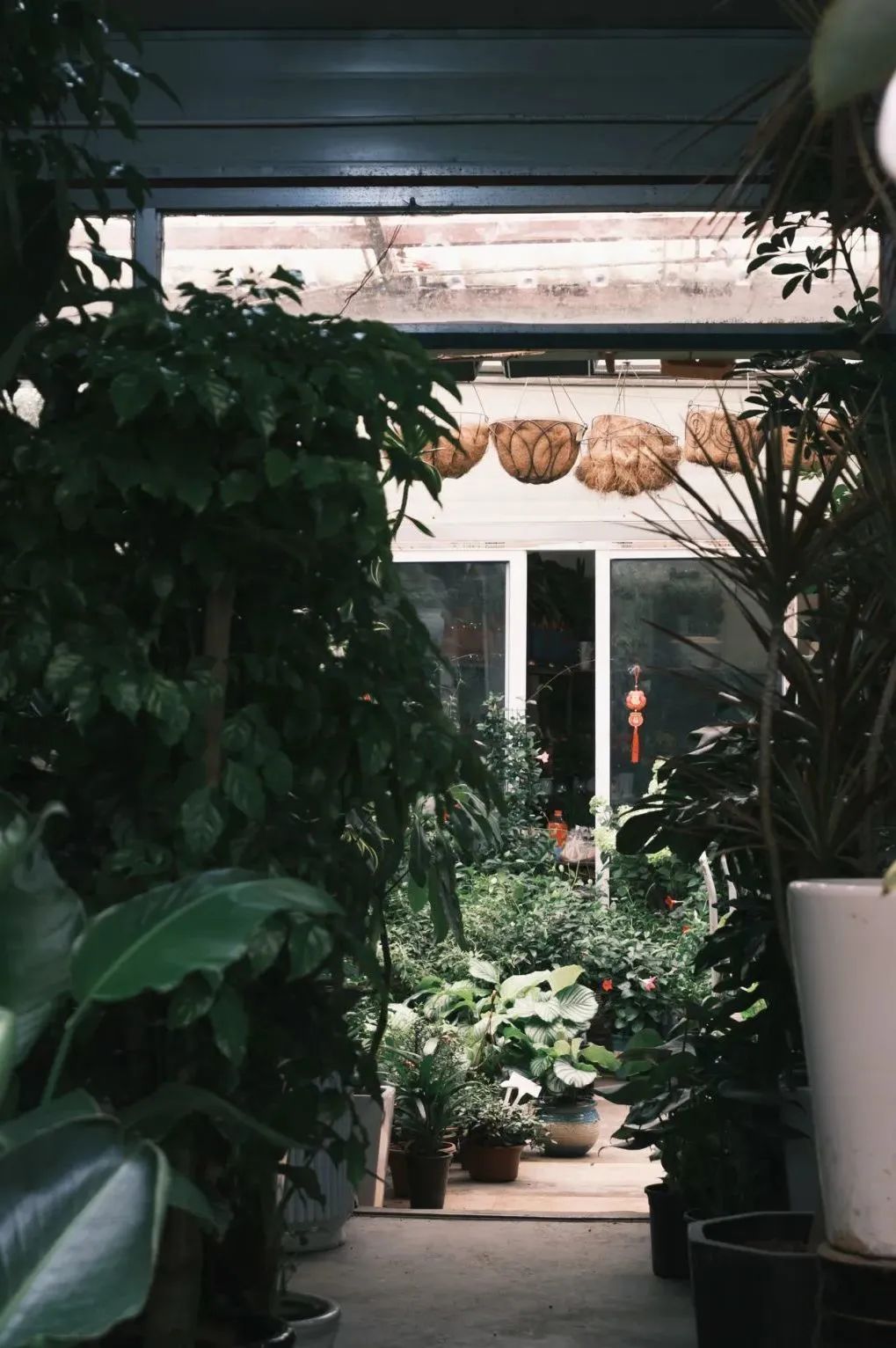 在这里闲逛,总会为店主的VM功力深深折服,看似随意拥挤的佛系陈列,却营造出了一间间不同风格的“森林小铺”。竹帘上墙,与绿植相得益彰。