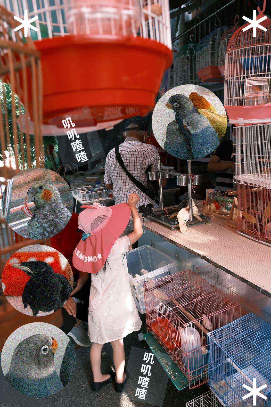 花鸟市场的鹦鹉摊儿,是从老到小,一头扎进去就出不来的治愈胜地。鹦鹉其实是很亲人的一种小动物,手养鹦鹉长大后,是可以和小猫小狗一样互动的。
