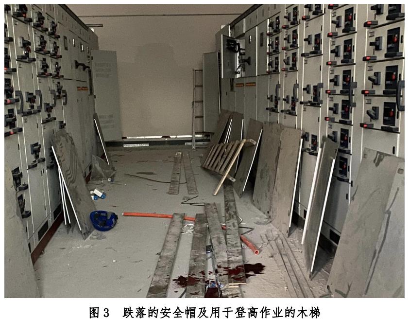 事发现场位于冷链物流项目2#冷库配电房内,配电房内共有3排配电柜,死者从配电房西侧第一排配电柜坠落至地面,坠落高度约2.3米。