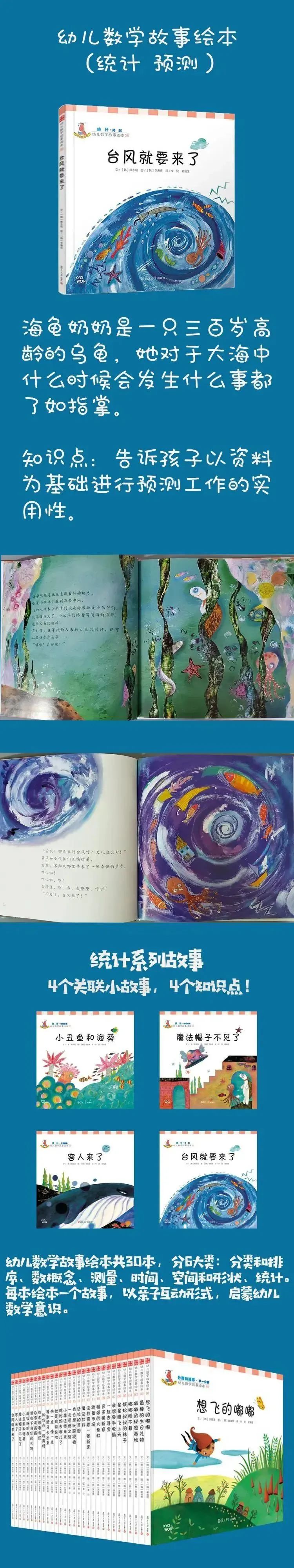 这本书里,海龟奶奶教大家如何去“预测”。海龟奶奶是一只三百岁高龄的乌龟。三百年来,她经历了很多事情,并把这些经历认认真真地记录下来,因此对于大海中什么时候会发生什么事都了如指掌。她经常让孩子们小心,不让大家做一些事情,大家心里很不喜欢她的干涉。但是通过海龟奶奶的手册,大家明白了资料记录的重要性,也明白了“通过资料的收集和整理,我也可以做出预测”这个道理。