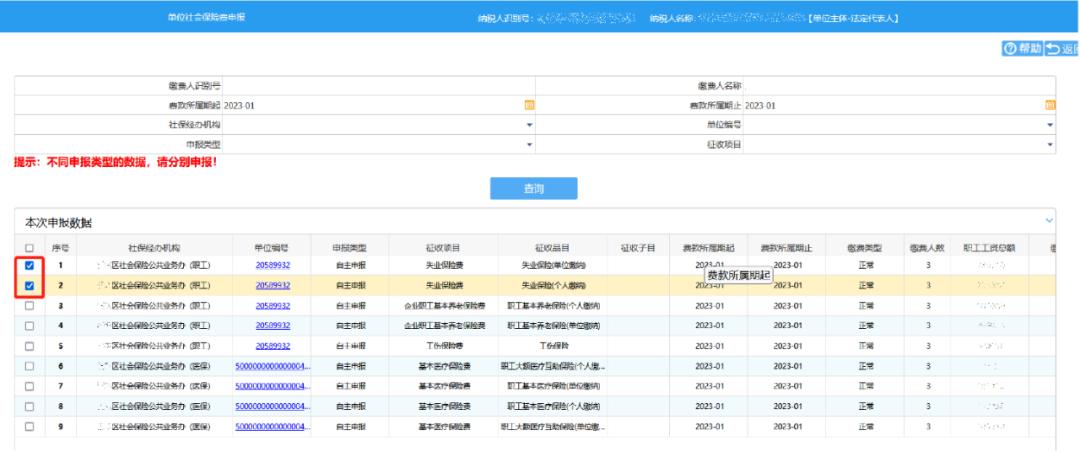 -注意-(1)税务系统生成的补差数据申报类型为“自主申报”,人社、医保部门传递的补差数据申报类型为“人社核定”或“特殊缴费”。